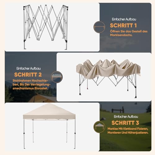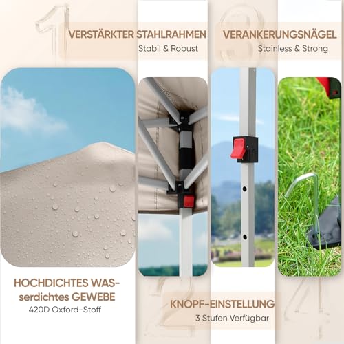 Sunula Pavillon 3×3 Wasserundurchlässig Sicher Winterfest, Faltpavillon 3x3m mithilfe Verdickten Röhren, Partyzelt Pavillion Klappbar statt dessen Camping Festspiel Fete, Khaki