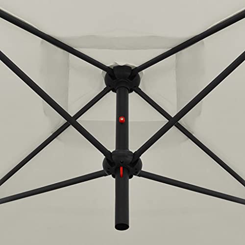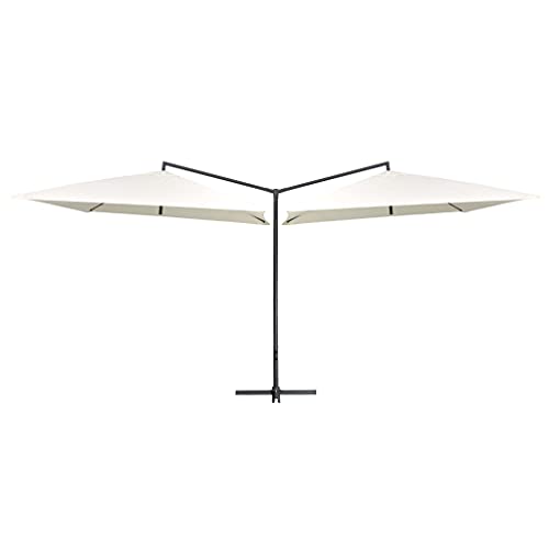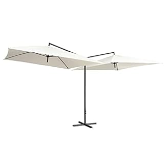 Technische Daten: Farbe: Sandweiß Material: Stoff (100 % Polyester) mit PA-Beschichtung, pulverbeschichteter Stahl Abmessungen: 485 x 250 x 260 cm (L x B x H) Größe jedes Schirms: 250 x 250 cm (L x B) Mastdurchmesser: 48 mm Duplikat-Sonnenschirm-Design Mit Entlüftungs- und Kurbelsystem 4 Stahlrippen an jedem Schirm Zusammenbau erforderlich: Ja