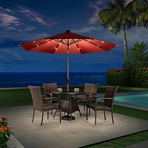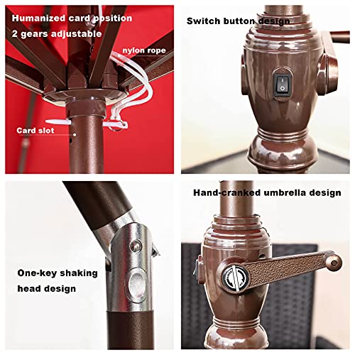 SXSGSM 3m/9.8ft Solarschirm, Gartenterrassenschirme mit LED-Beleuchtung, Outdoor-Restaurant, Markttisch, Sonnenschirm mit manueller Kurbel, 8 stabile Rippen