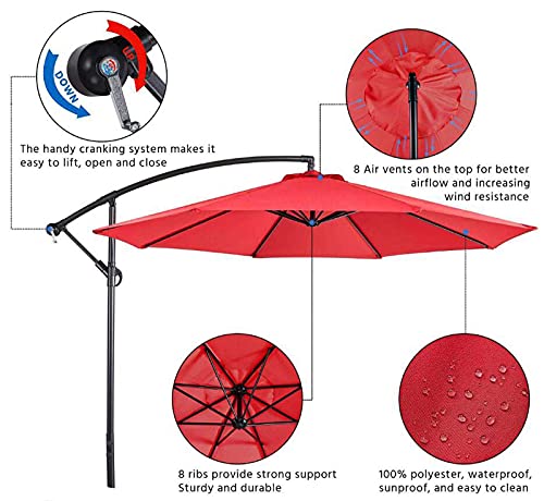 [Einfach zu bedienen] – Der Außenschirm hat einen Durchmesser von 10 Fuß und ist betrunken genug, um 4-5 Stühle und einen Tisch aufzunehmen. Er ist mit einer Kurbel ausgestattet, mit der Sie ihn einfach und bequem öffnen und die Sonne gut blockieren können. Der Griff an der Stange bewegt sich nach oben und herab, um den Winkel Ihrer Regenschirme anzupassen. So können Sie und Ihre Familie eine coole und komfortable Party oder Teezeit im Freien genießen.