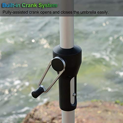 【Crank & Tilt System】: Kurbelgriff zum einfachen Öffnen und Umleiten. Geneigtheit per Knopfdruck zur Maximierung des Schattens durch Neigen des Baldachins, wenn sich der Sonnenstand ändert, sodass Sie die Sonne die ganze Zeit von sich fernhalten können.