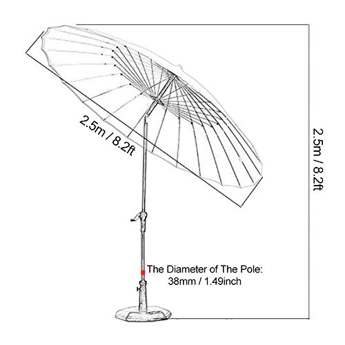【8,2 Fuß Durchmesser】: Bietet einen Schatten von bis zu 8,2 Fuß Durchmesser, beschattet Ihren runden, quadratischen oder rechteckigen Tisch mit 3-5 Stühlen. Ideal für Wohn- und Gewerbestandorte.