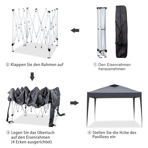 【Kompakt & Transportfreundlich】Der Pavillon lässt sich schnell zusammenfalten darüber hinaus angesichts mitgelieferter Tragetasche leicht transportieren,perfekt stattdessen Camping oder Ausflüge