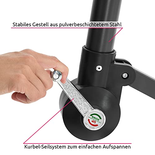 Der Schirm verfügt über ein Kurbel-Seilsystem, wodurch sich der Schirm kinderleicht aufspannen lässt. Die im Lieferumfang enthaltene Schutzhülle kann sowohl über den ganzen Schirm, zwar aka jedoch über den Stoff aufgezogen werden und bietet optimalen Abschirmung vor Staub und Verwitterung. Neben uns kannst du Sonnenschirme in bester Qualität kaufen.