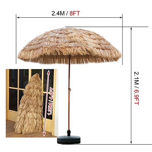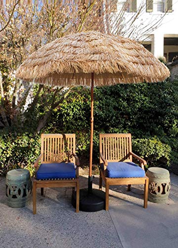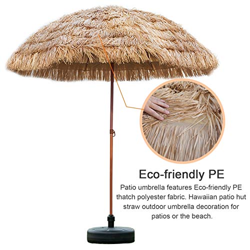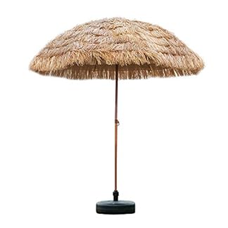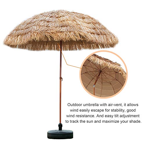 Verleihen Sie Ihrer Terrasse mit diesem Regenschirm im hawaiianischen Stil einen Hauch von tropischem Flair. Sonnenschirm mit 8 Fuß breitem Baldachin ist vielseitig einsetzbar für Strand, Terrasse oder Garten. Sie können die Neigungsposition mit dem einfachen Druckknopf anpassen.