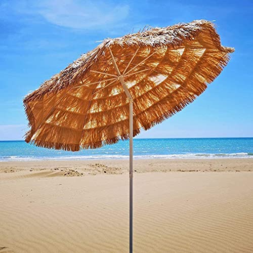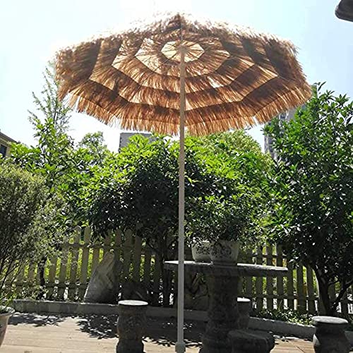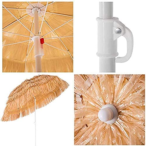 Strohschirme im hawaiianischen Stil haben ein reines Strandgefühl. Stellen Sie den Schirm einfach auf den Boden oder auf einen geeigneten Schirmständer, nachspionieren Sie dem Wind, der durch die Schlieren im Schatten weht, und entspannen Sie sich.