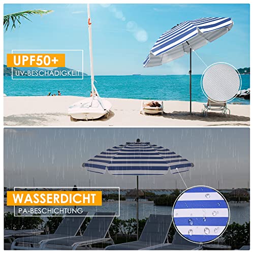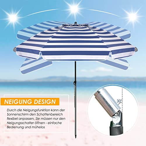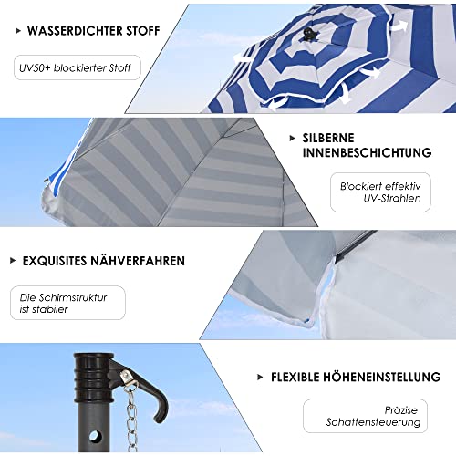 【Starker Rahmen】 – 8 verstärkte Rippen machen den Sonnenschirm stärker und winddichter. Die verbesserte Schirmstange ist rostfrei und langlebig. Das Material hält hohen Temperaturen einverstanden stand. Ein leichter, tragbarer Strandschirm ist eine ideale Abtrennung, um die Sommersonne abzuschirmen.
