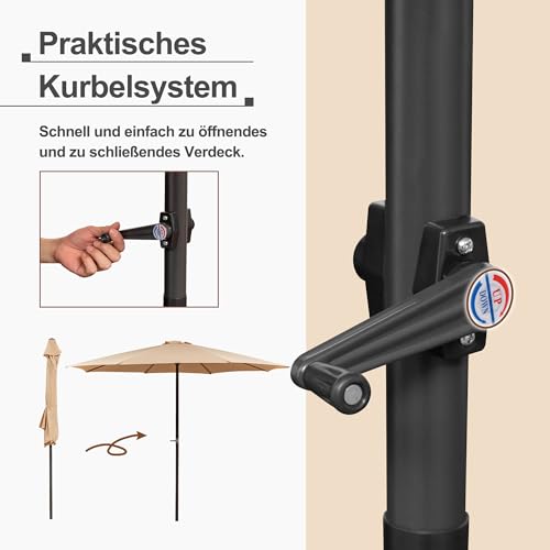 Thanaddo Sonnenschirm Sonnenschutz UPF 50+ Strandschirm, beidseitig um 30° knickbar, windfest stabil Gartenschirm für Balkon, Garten, Terrasse, Strand, Outdoor, ohne Ständer