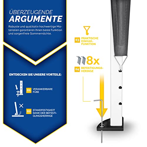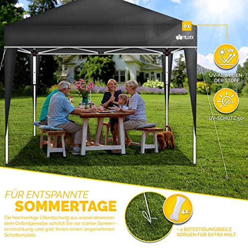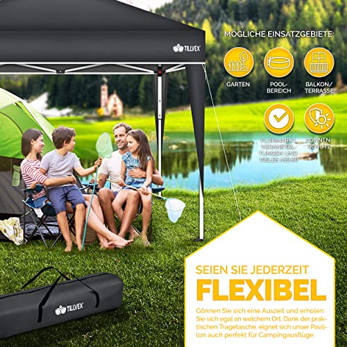HOCHWERTIGE MATERIALIEN: Unser tillvex Faltpavillon besitzt ein Gestell ganz Stahl mit Pulverbeschichtung. Zudem ist es 3-fach in der Höhe verstellbar. Die Metallstreben, verankerten Füße, Heringe und die Spannseile verleihen alternative Haltbarkeit.