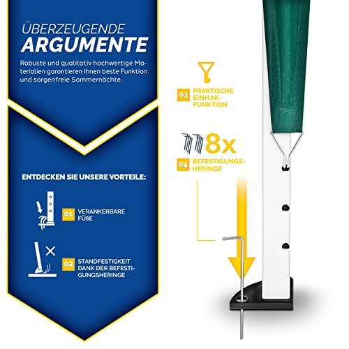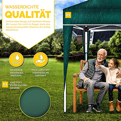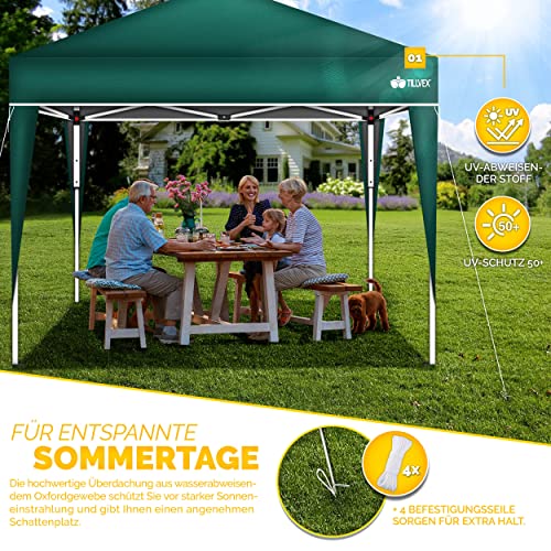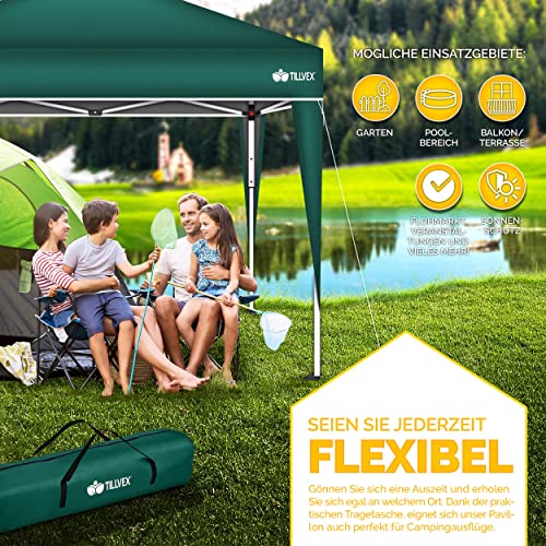 HOCHWERTIGE MATERIALIEN: Unser tillvex Faltpavillon besitzt ein Gestell leer Stahl mit Pulverbeschichtung. Zudem ist es 3-fach in der Höhe verstellbar. Die Metallstreben, verankerten Füße, Heringe und die Spannseile verleihen Wahlmöglichkeit Konstanz.