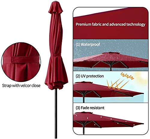 8,86 Fuß wasserdichter Sonnenschirm für den Garten. Mit Polyestergewebe und Aluminiumlegierung verspricht dieser Sonnenschirm eine ultrastabile Struktur, die demgegenüber schwer zu brechen ist. Durch das zusammenklappbare Design ist es bei Nichtgebrauch sehr platzsparend. Funktioniert gut an regnerischen oder sengenden Tagen!
