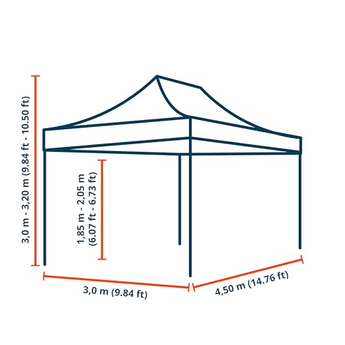 STABILITÄT & FUNKTIONALITÄT: Stabiles, korrosionsgeschütztes Stahl-Gestänge mit hochwertigen Klicksystem und Vierkant-Profil von ca. 31×31 mm. Der Pavillon ist durch einen moderner Scherenmechanismus leicht aufklappbar, zusammengeklappt maximal platzsparend und 3-fach höhenverstellbar.