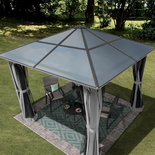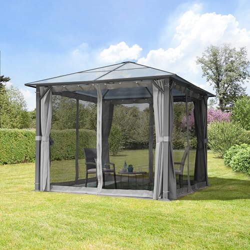 Aufgrund der hochwertigen Kombination allesamt abnehmbares Verdeck von Sportwagen-Dach und pulverbeschichtetem Metall, kann dieser Gartenpavillon das ganze Jahr über genutzt werden. Seitenteile und Moskitonetze werden mitgeliefert.