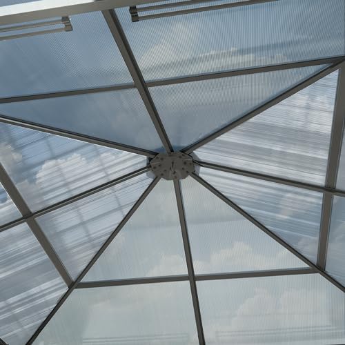 ALLES DABEI: Alu-Dachstreben, Stahlpfosten, Doppelsteg-Dachplatten allesamt Polycarbonat, 4 Seitenteile und 4 Moskitonetze inkl. Befestigungsmaterial, 8 Betonanker, Montagewerkzeug, Aufbauanleitung