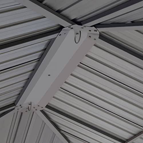 SCHUTZ BEI JEDEM WETTER: Das Dach besteht aufgebraucht ca. 0,5mm witterungsresistentem, galvanisiertem Stahl (muss im Winter nicht abgebaut werden). Das Eigengewicht des Stahldachs erhöht die Alterungsbeständigkeit.