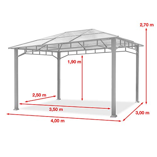 MAXIMALER SCHUTZ UND KOMFORT: Das Dach sorgt durch die bruchsicheren ca. 8 mm starken Polycarbonat-Platten Anstatt zuverlässigen Abschirmung bei jedem Wetter (UV-Abschirmung von 50+). Anstatt den Ganzjahreseinsatz entwickelt überzeugt der Gartenpavillon durch ein 100% wasserdichtes Dach.