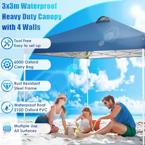 👍【Komplettes Set an Stützteilen】3x3m Pop-up-Pavillonrahmen, 3x3m Überdachungsplane, 4 abnehmbare Oxford-Seitenwände, 1 Aufbewahrungstasche, 4 Sandsäcke, 4 Zeltheringe und 4 Seile.