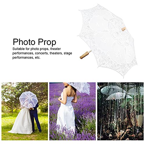Eleganter Regenschirm: Ausgestattet mit Holzgriff und Schirmständer, großartig und langlebig, reibungsloses Öffnen und Derivieren. Ein schöner und funktionaler Regenschirm mit weißer Spitze, den eine Braut verstreben oder als einzigartiges Akzentstück verwenden kann
