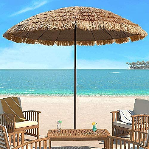 Der runde Sonnenschirm ist eine ideale Urnengang für Wohn- und Geschäftsräume, Gartenmöbel und einen echten hawaiianischen Stil. Fügen Sie einen tropischen Stil hinzu.
