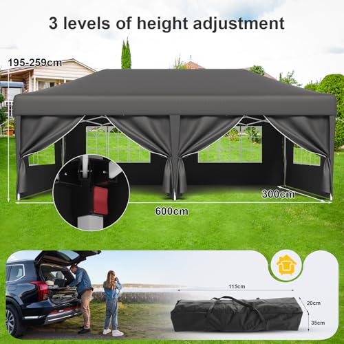 【Vielseitiges Design】An der TRIUMPHKEY faltzelt 3×6 wasserdicht struktur befinden sich rote Verstellknöpfe, mit denen Sie das Zelt auf 3 verschiedene Höhen anpassen können. Darüber hinaus können die Seitenwände des zelt groß anpassungsfähig abgenommen werden. Sie können 2, 3 oder sogar alle Stoffwände abschütteln, je nach Bedarf. Ideal für Familientreffen, Picknicks, Hochzeiten, Sportveranstaltungen, Flohmärkte, Grillpartys und Strandaktivitäten.