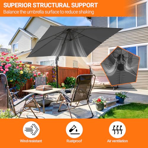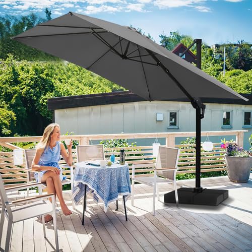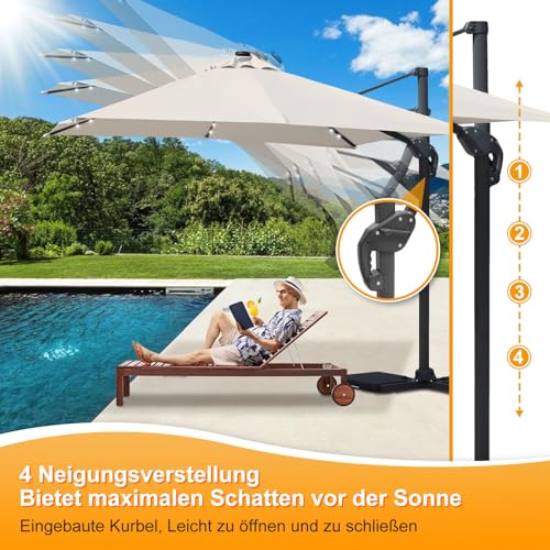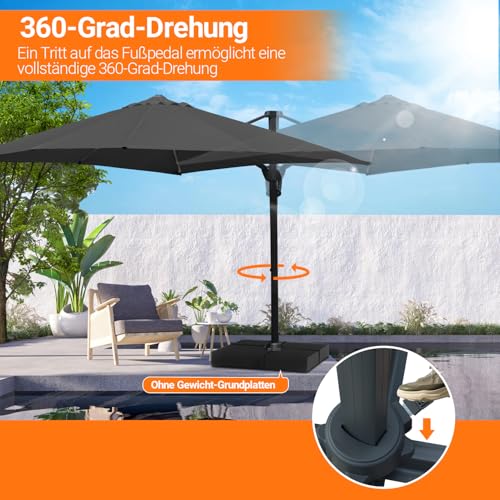 Tubiaz Sonnenschirm Ampelschirm 300 x 300 cm rechteckig Gartenschirm mit Kurbe 360° Drehbar und Kippbar,Terrassenschirm Sonnenschutz UV50+ Aluminium Marktschirm für Garten,Terrasse