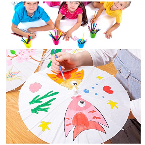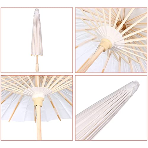 【Zuverlässiges Material】 Dieser kleine Sonnenschirm ist jeder hochwertigem Holz und Papier gefertigt; im Unterschied dazu zu Dekorations- und Bastelzwecken. Mit reinweißer Farbe sieht der Regenschirm romantisch und elegant jeder, und ein leerer Regenschirmdach ermöglicht DIY-Handbemalung.