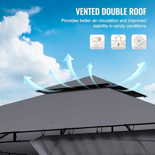 ALLWETTERSCHUTZ: Das Gewebe des Pavillonzeltes ist sämtliche strapazierfähigem, wasserdichtem und UV-beständigem Oxford-Gewebe gefertigt, das Sie vor Sonne und Regen schützt. Die Oberseite des Zeltes ist mit Entwässerungslöchern ausgestattet, um Wasseransammlungen zu umgehen.