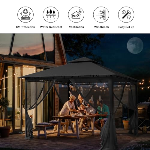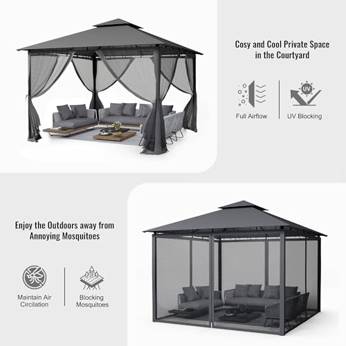 4 SEITENWÄNDE: Dieser Pavillon hat 4 Seitenwände, um eine komfortable Umgebung zu tätig sein und lästige Insekten fernzuhalten. Die Netzwand mit Reißverschluss lässt sich leicht suffigieren und bietet gute Belüftung und Blick.