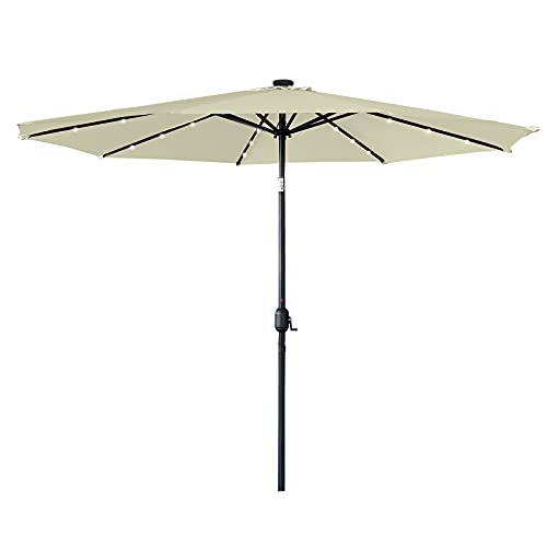 UISEBRT 300cm Sonnenschirm Alu Neigbar mit Handkurbel UV Schutz 40+ und Solar LED Warmweiß – Gartenschirm Terrassenschirm Marktschirm für Balkon, Garten, Terrasse (300cm mit LED, Beige)