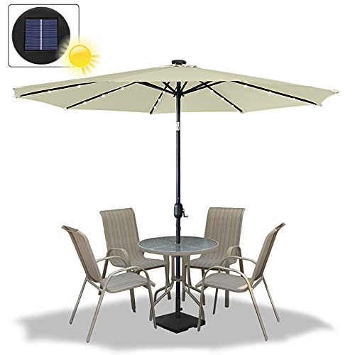 Leichtmetall-Sonnenschirm Mit LED – Farbe: Beige,Durchmesser: 300cm,Schirmhöhe: 245cm,Material Mast: Alu,Material Bezugstoff: 100% Polyester (Wasserdicht)