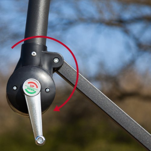 Mit Hilfe von der Kurbel lässt sich der Ampelschirm bescheiden anbrechen im Übrigen ableiten sowie in der Höhe anpassen