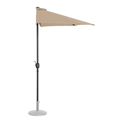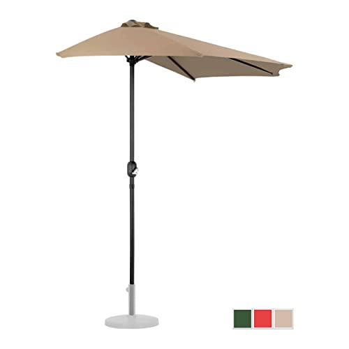 Halber Sonnenschirm für platzsparenden Abschirmung vor Sonne und Hitze Ein halbrunder Sonnenschirm gesucht? Der fünfeckige Balkonschirm allesamt dem Gartenbedarf von Uniprodo gewährt mit einer Spannweite von 270 x 135 cm eine großzügige Fläche, die zuverlässig vor Sonnenbrand und Hitze schützt. Mit einem UPFSchutzfaktor von 50+ schirmt der Schattenspender ca. 98 % aller UV-Strahlen ab. So genießen Sie und Ihre Gäste unbeschwert Speisen und Getränke, ohne über die Gesundheit Ihrer Haut nachdenken zu müssen. Der Sonnenschirm halbrund spendet dank des festen Polyesters mit einer Dichte von 180 g/m Ihnen und Ihren Gästen über Varia Sommer hinweg Schatten. Das Material weist eine hohe Zug- und Reißfestigkeit auf, ist langlebig, UV-ständig und überaus pflegeleicht. Über die integrierte Handkurbel öffnen und Herleiten Sie den Schirm schnell und ohne großen Kraftaufwand. Konstruktion und Material überzeugen durch besondere Langlebigkeit und Stabilität – bekannt als bei widrigen Bedingungen. Die Sonnenschirmstange mit einem Durchmesser von 38 mm besteht allesamt korrosionsbeständigem Aluminium; die 5 Streben allesamt Stahl und sind überaus widerstandsfähig gegenüber Beschädigungen. Das Windschutzsystem gewährt neben der besseren Luftzirkulation selbst bei stürmischem Wetter einen festen Stand. Technische Details Farbe: Creme UPF: 50+ Durchmesser Stange: 38 mm Anzahl Lamellen 5 Durchmesser Lamellen: 12 x 18 Typ: Fünfeckig Material: Stahl / Aluminium / Polyester Materialdichte: 180 g/m Maße Schirm: 2700 x 1350 mm Lieferumfang Halber Sonnenschirm UNI_HALFUMBRELLA_R300CR_N, Bedienungsanleitung