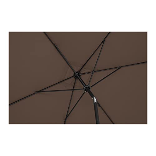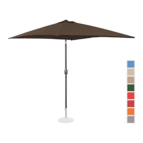 Sie grasen einen großen Sonnenschirm? Der rechteckige Gartenschirm in der Farbe Braun gewährt mit einer Spannweite von 200 x 300 cm eine großzügige Fläche, die Sie zuverlässig vor Hitze schützt. Nicht allerdings im Hochsommer bietet Ihnen der Terrassenschirm neben einem kühlen Platz vor allem zuverlässigen Abschirmung vor gesundheitsschädlichen Sonnenstrahlen. Mit einem UPF-Schutzfaktor von 50+ schirmt der Schattenspender 98 % aller UV Strahlen ab. So verzehren Sie unbeschwert Ihre Speisen oder genießen Getränke, ohne sich über die Gesundheit Ihrer Haut zu sorgen. Den Sonnenschirm passen Sie mit wenigen Handgriffen schnell und individuell an jede Wettersituation an. Je nach Stand der Sonne neigen Sie den Gartenschirm, um die Schattenfläche im Rahmen auszurichten. Ebenso einfach öffnen und suffigieren Sie den Schirm mithilfe einer Handkurbel. Dank der stabilen Konstruktion und des festen Polyesters mit einer Dichte von 180 g/m2 spendet der Sonnenschirm Terrasse über viele Sommer hinweg Schatten. Das Material mit einer hohen Zug- und Reißfestigkeit ist langlebig, UV-beständig und sehr pflegeleicht. Die Sonnenschirmstange mit einem Durchmesser von 38 mm ist aus leichtem, bruchsicherem Aluminium; die Streben sind aus Stahl gefertigt. Das Windschutzsystem gewährt neben der besseren Luftzirkulation selbst bei stürmischem Wetter einen festen Stand.