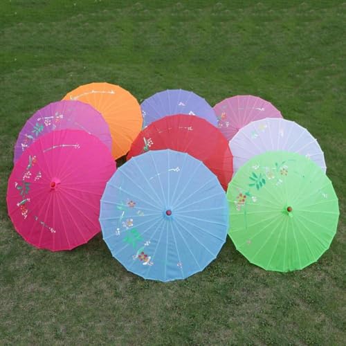 Uteruik Bambus-Regenschirm aus Stoff, 53,3 cm Durchmesser, Blumendruck, Sonnenschirm, Frauenschirm, chinesischer handgefertigter Stoff-Sonnenschirm, florales dekoratives Zubehör