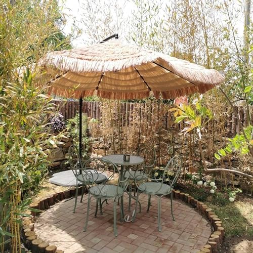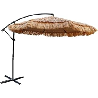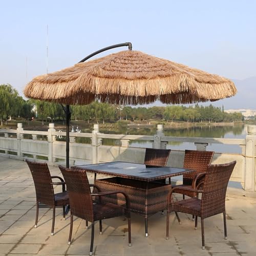 VejiA 2,7 m freitragender Garten-Sonnenschirm, Strohschirm, Terrassen-Sonnenschirm mit Kurbel und Sockel, geeignet für Villen, Innenhöfe, Cafés, Gärte