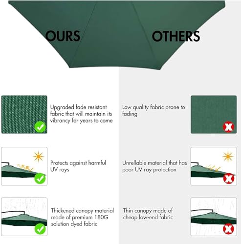 Mehr als Stoff] – Die Schirmoberfläche besteht aus Polyestergewebe. Es weist eine hohe Elastizität, Festigkeit und Haltbarkeit auf. Wir haben die Oberfläche des Polyester-Schirmstoffs mit einer wasserfesten Beschichtung und einer Anti-UV-Beschichtung versehen. Um diesen Gartenschirm für den Außenbereich besser an Ihre Bedürfnisse anzupassen.
