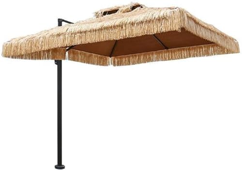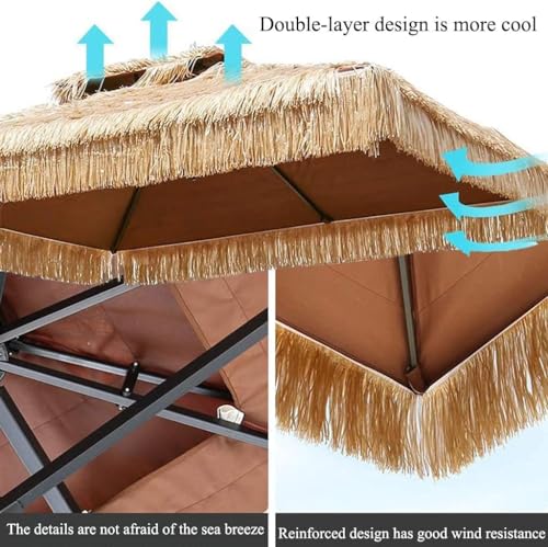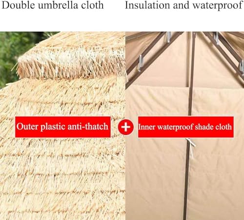 VejiA Doppeldach-Stroh-Sonnenschirm, atmungsaktiver, wärmeisolierter, wasserdichter 250 cm strohgedeckter Sonnenschirm, Garten-Pool-Terrasse-Bast-Stro