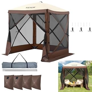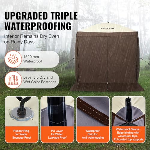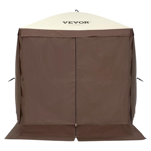 VEVOR Pop-Up-Pavillonzelt, Pop-Up-Zelt mit 4-seitigem Baldachin, Sonnenschutz mit 4 abnehmbaren Sichtschutz-Windtüchern und Netzfenstern, 6 x 6 Fuß, Schnellaufbau-Zelt mit Moskitonetz, braun