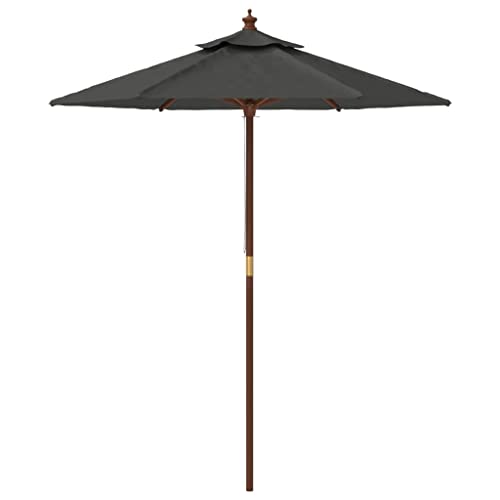vidaXL Sonnenschirm, Gartenschirm mit Holzmast UV-Schutz, Strandschirm mit Belüftung 6 Rippen, Marktschirm Balkonschirm Terrassenschirm, Anthrazit