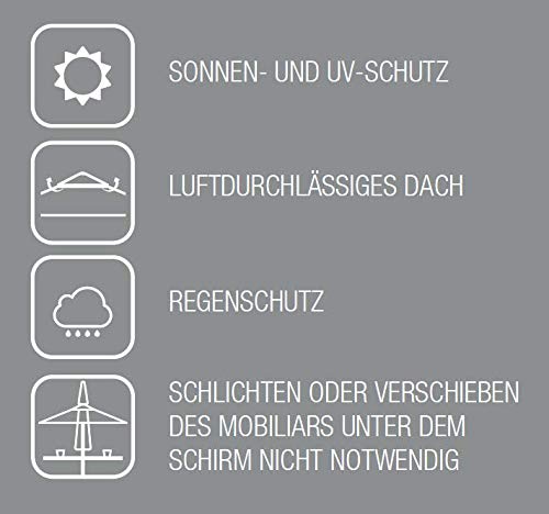 ☀ EINFACHE ANWENDUNG – Der Schirm lässt sich sehr leicht öffnen und umleiten ein Schlichten von Möbel unter dem Schirm ist nicht notwendig (Tischhöhe ca. 80 cm).
