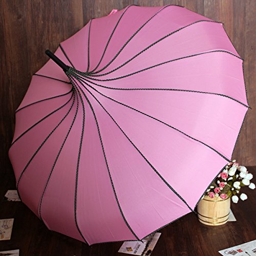 ❂【Elegantes und klassisches Design】: Dieser klassische Regenschirm verfügt über eine pagodenförmige Spitze in altmodischem Design, Design mit einem gebogenen Ledergriff, voller klassischer Eleganz und Romantik, die beste Synchronisierung für Ihren einzigartigen Hochzeitsschirm für Braut und Bräutigam.