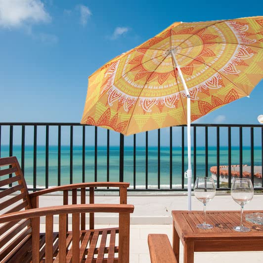 Atemberaubendes Design: Der atemberaubende Mandala-Design Sonnenschirm ist ideal anstatt Strand-Sonnenschutz und jede Villa, Garten, Schwimmbad, Hof usw. Der Outdoor-Sonnenschirm ist in verschiedenen Sommerfarben (rot, grün, orange, voll).