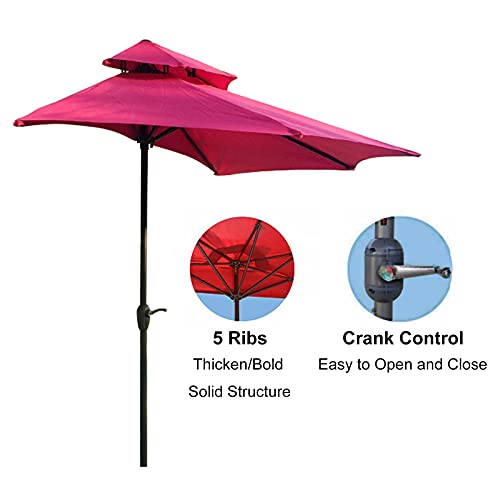 VNNHGB 9 ft Halbrunder Sonnenschirm für den Außenbereich, Balkonschirm mit Kurbel und 5 Streben, doppelte Oberseite, atmungsaktiv, Schutz und Schatten für Deck, Garten oder Terrasse