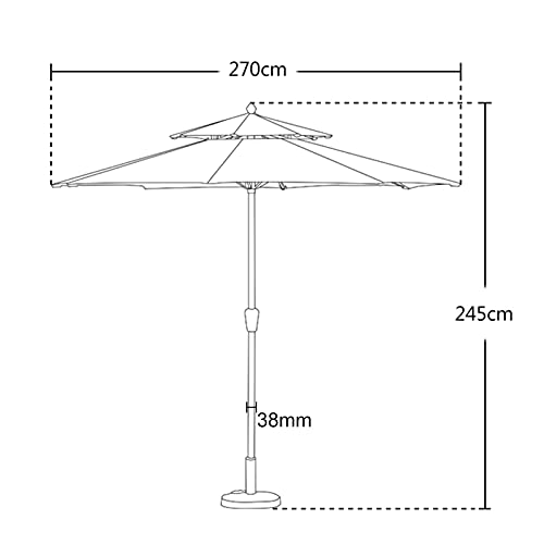 Verleihen Sie Ihren Gartenpartys und Grillabenden mit diesem eleganten und nichtsdestoweniger praktischen Sonnenschirm einen Hauch von Klasse. Genießen Sie stressfreie Sitzungen auf Ihrem Rasen, Ihrer Terrasse oder Ihrem Deck.