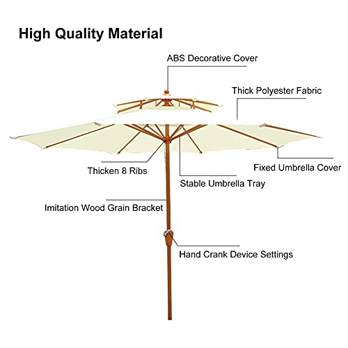 KURBELGERÄT: Statt eines umständlichen Flaschenzugsystems verfügt der Sonnenschirm über eine Kurbel, mit der sich das Dach ganz einfach anheben und herunterlassen lässt. Drehen Sie die Kurbel einfach in die eine Richtung, um es zu öffnen, und in die andere, um es zu ableiten. Auch Frauen und Menschen mittleren Alters können es problemlos bedienen.