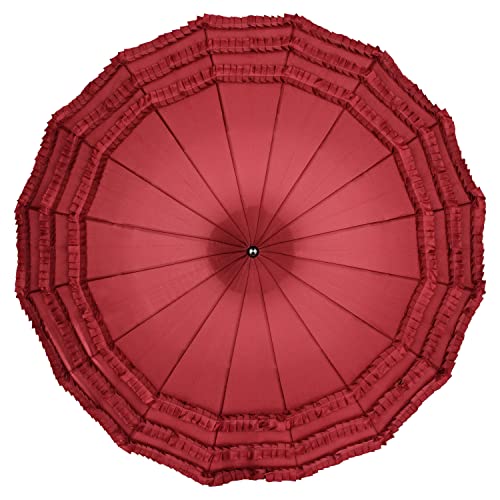 VON LILIENFELD Regenschirm Hochzeitsschirm Sonnenschirm Rüsche Stabil Pagode Sarah bordeaux