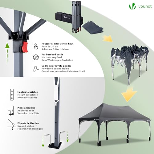ROBUSTE UND LANGLEBIGE KONSTRUKTION: Der Faltpavillon 3×6 m bietet zuverlässigen Abschirmung für Ihre Veranstaltungen im Freien. Die verstärkte Stahlstruktur gewährleistet optimale Stabilität und Langlebigkeit. Die Höhe kann in drei Abstufen (295/305/315 cm) nach Ihren Bedürfnissen abgestimmt werden.
