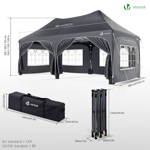 FALTBARER RAHMEN UND ABNEHMBARE WÄNDE: Der Gartenpavillon ist mit einem faltbaren Rahmen ausgestattet, der eine schnelle Montage ohne Werkzeuge ermöglicht. Die vier Wände mit Fenstern umsorgen ausreichend Tageslicht, während die beiden Wände mit Reißverschlüssen einen praktischen Einblick bieten. Ob in offener oder geschlossener Adaptierung, dieser Pavillon faltbar 3×6 m passt sich anpassbar Ihren Bedürfnissen an.
