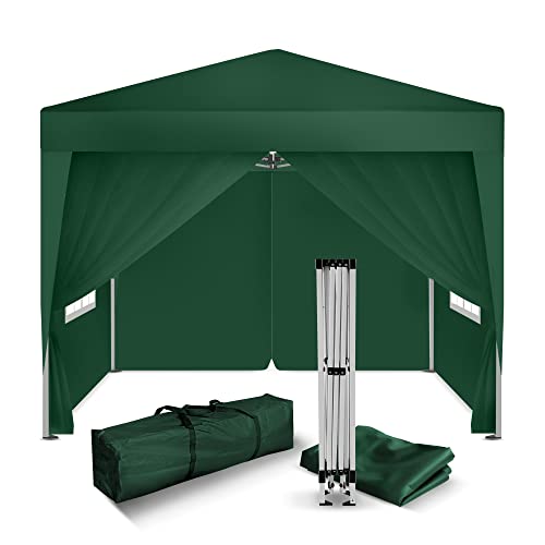 ZUBEHÖR VOLLSTÄNDIG: Unser Faltzelt-Pavillon wird mit allem notwendigen Zubehör geliefert, um eine stabile Montage zu gewährleisten: 4 Seile, 12 L-Pfosten, 4 Spiral-Pfosten und 6 Sandsäcke zur Stabilisierung, selbst bei Wind. Eine praktische Tragetasche für einfachen Transport sowie zur bequemen Lagerung und Reise ist ebenfalls enthalten. Der Aufbau und Entlassung ist einfach, ideal für Ihre Veranstaltungen im Freien.