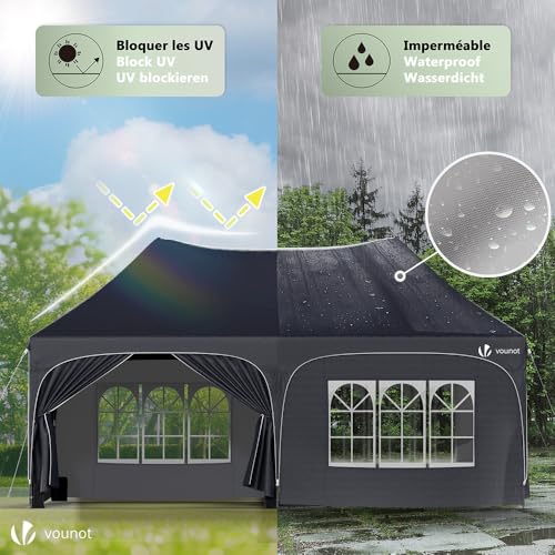 MULTIFUNKTIONALE NUTZUNG: Das Partyzelt 3×6 m bietet 18 m² großen Raum und ist ideal für verschiedene Veranstaltungen wie Empfänge, Hochzeiten oder Aktivitäten im Freien. Die großzügige Fläche macht es zur perfekten Urnengang für Familienfeiern, Märkte oder einfach zum Entspannen im Garten. Dieses Gartenpavillon 3×6 ist für alle Jahreszeiten geeignet und ermöglicht es Ihnen, Ihre Outdoor-Aktivitäten in vollem Umfang zu genießen.